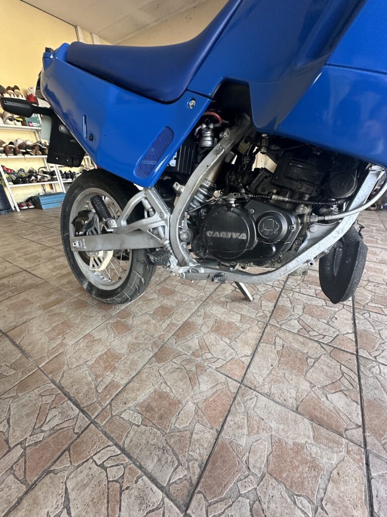 Personnellement j’ai toujours été plus attiré par les modèles cross / enduro. C’est donc tout naturellement que j’ai regardé avec envie la 125 Tamanaco quand elle est sortie. Encore plus avec sa livrée Dakar, qui était une façon de fêter la victoire d’Edi Orioli à ce mythique rallye.