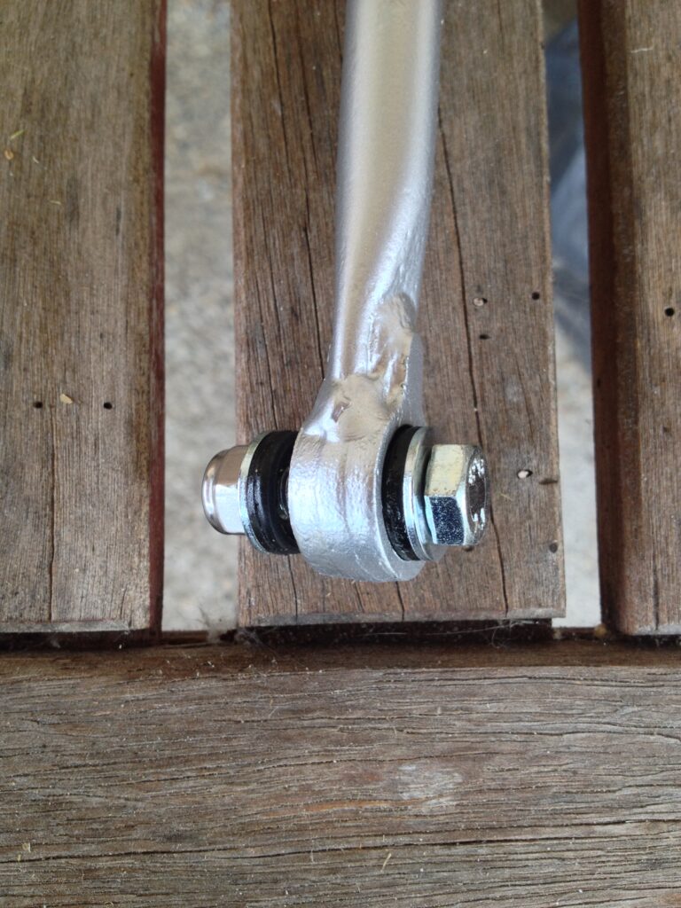 Concernant les T de fourches, les différents supports, les éléments de l’amortisseur arrière, toutes les pièces ont suivi le même traitement. A savoir décapage, traitement antirouille si besoin, mise en apprêt puis peinture. Pour ces éléments comme pour le bras oscillant, j’ai utilisé des peintures spécifiques pour jantes de la marque Hycote. Elles sont résistantes, pour les avoir testées et utilisées depuis des années. je peux le confirmer