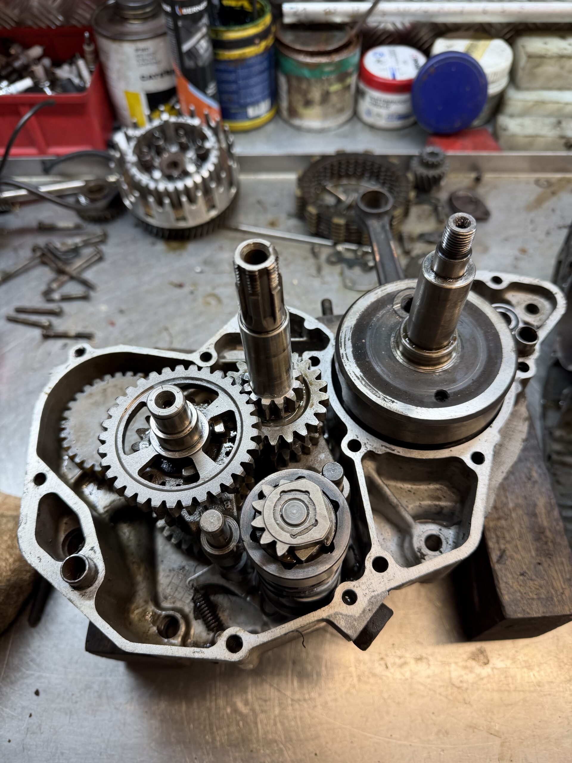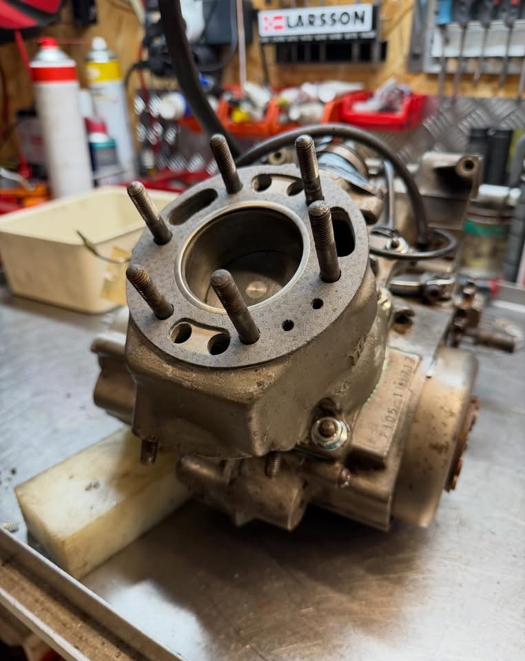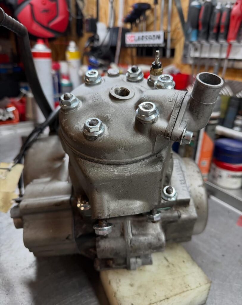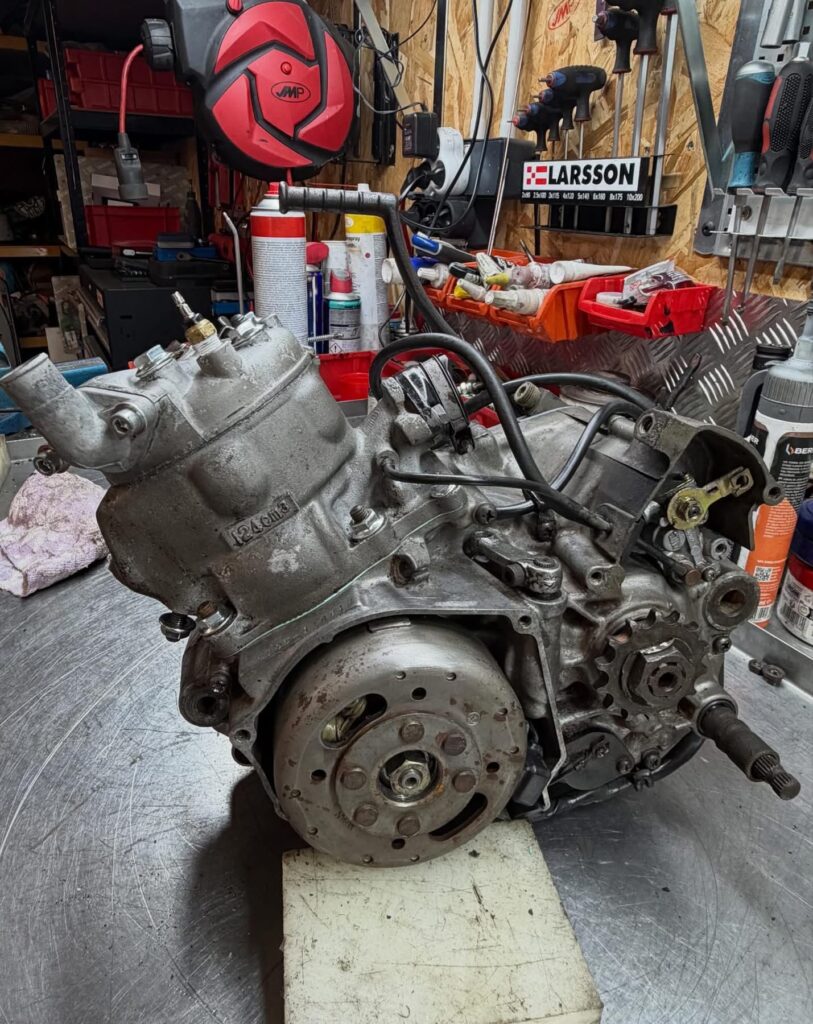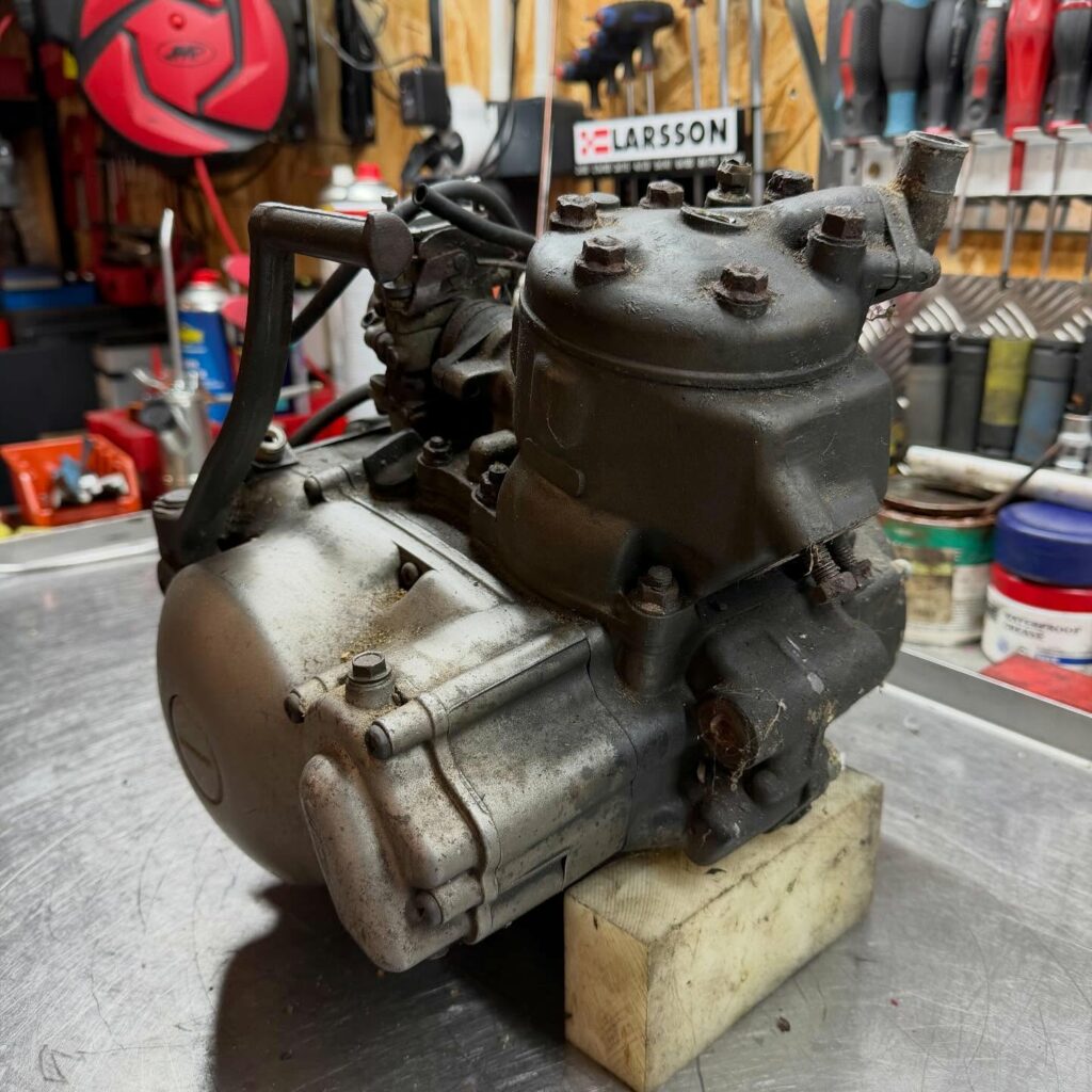 Le moteur de la Suzuki 125 TSX patiente depuis plusieurs années dans le garage.