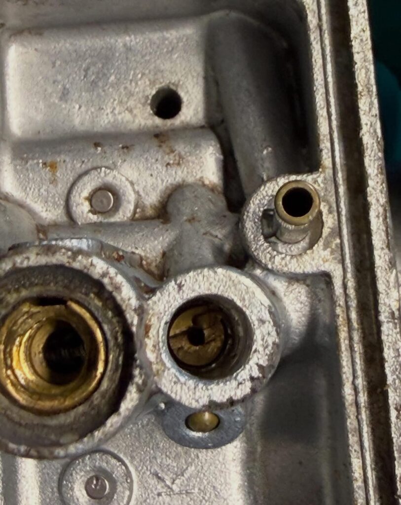 Le bloc a donc été complètement démonté, nettoyé et remonté. Idem pour le carburateur qui a été nettoyé, joints changés. Quand cela était nécessaire, les pièces ont été changées par de l’origine. Beaucoup de temps a été passé sur la « désolidarisation » de certaines pièces corrodées… (Par exemple cylindre et embase moteur, impossible à désolidariser au départ).